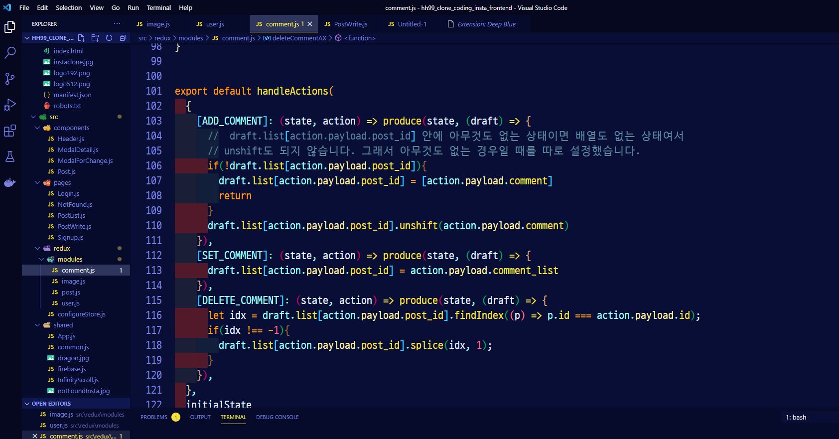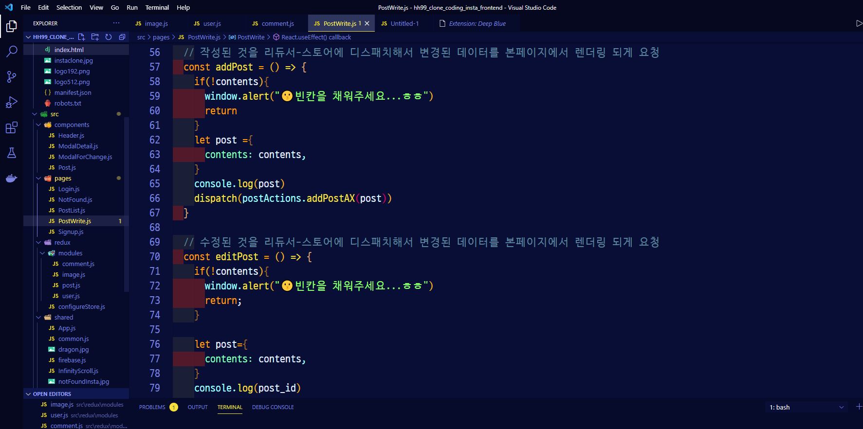 리액트 능력자인 동료의 하드캐리가 있어서, 사놓고 묻어 두었던 인스타그램 클론코딩 강좌의 도움이 있어서 이 과제는 무사히 마치는게 가능했다. 다행이다 정말.