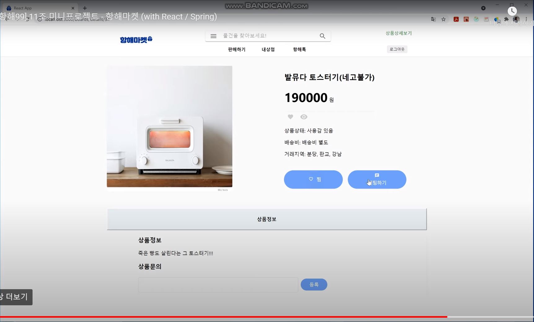 메인페이지 상품게시글 작성 제품상세페이지 미완성인 채팅창 2. 실전프로젝트