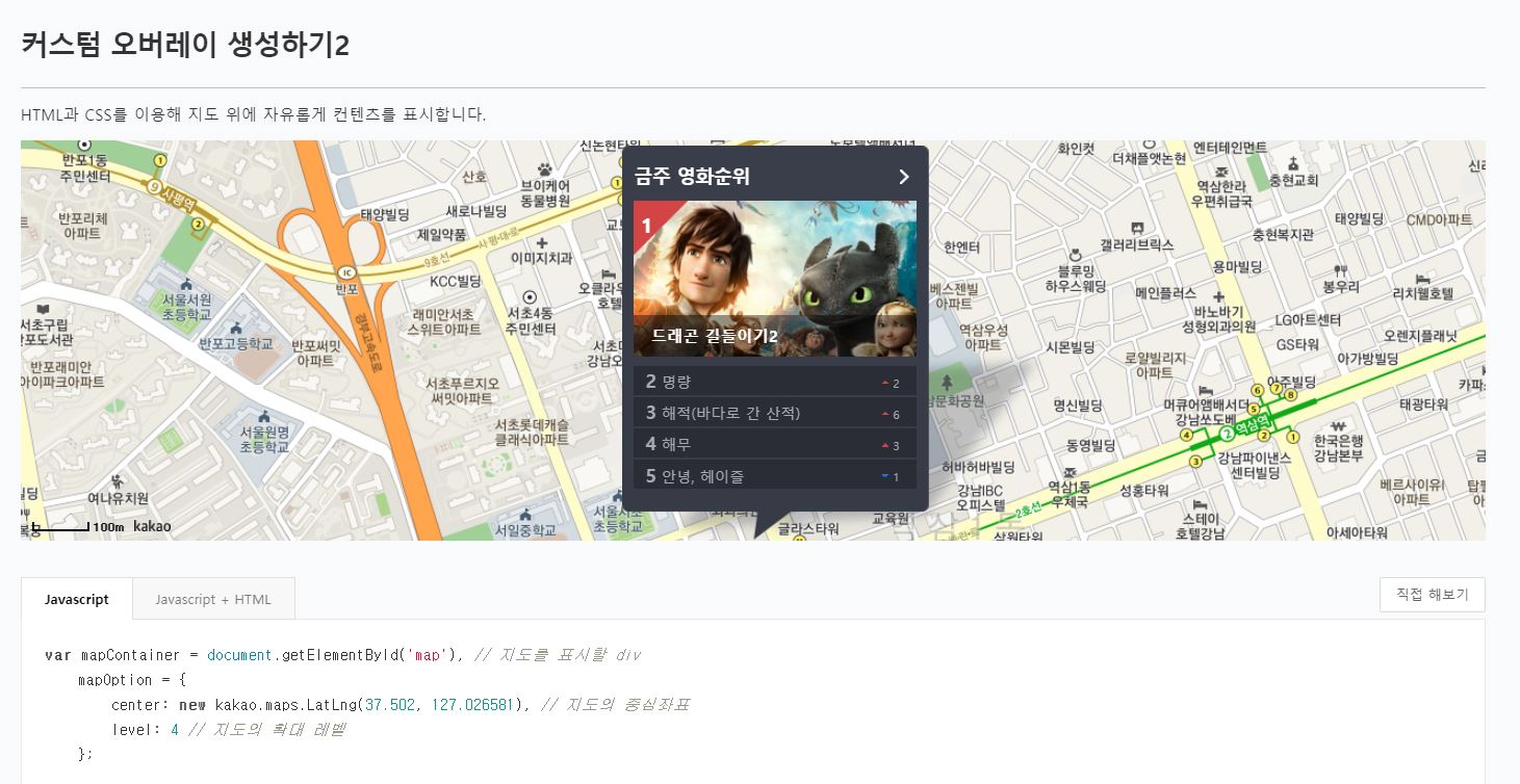 이렇게 지도상의 원하는 위치에 게시물을 올리는 것을 커스텀오버레이라고 한다. 나도 이렇게 구현을 했는데, 우리 경우에는 사진과 장소 이름을 같이 나오게 하는 커스텀오버레이를 만드는 것이다.