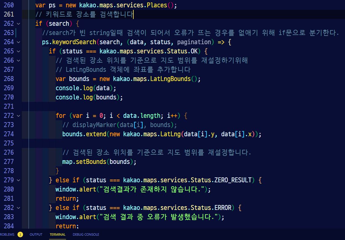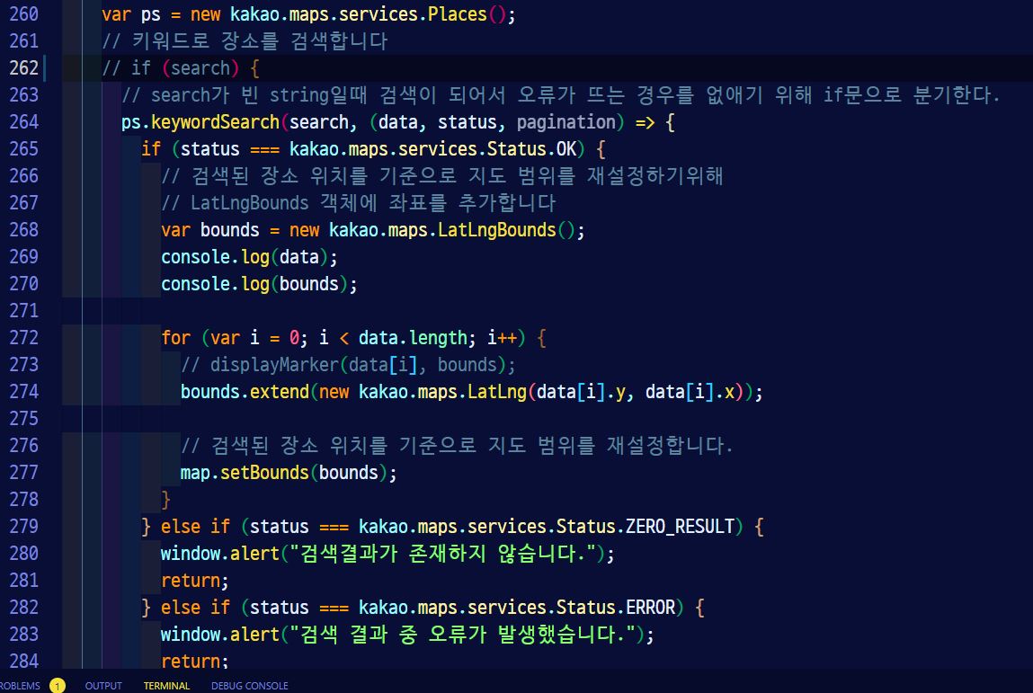 카카오 지도 API를 이용해서 검색 기능을 넣을 때, 다음과 같은 문제가 개발자도구의 콘솔창에 찍혔다.