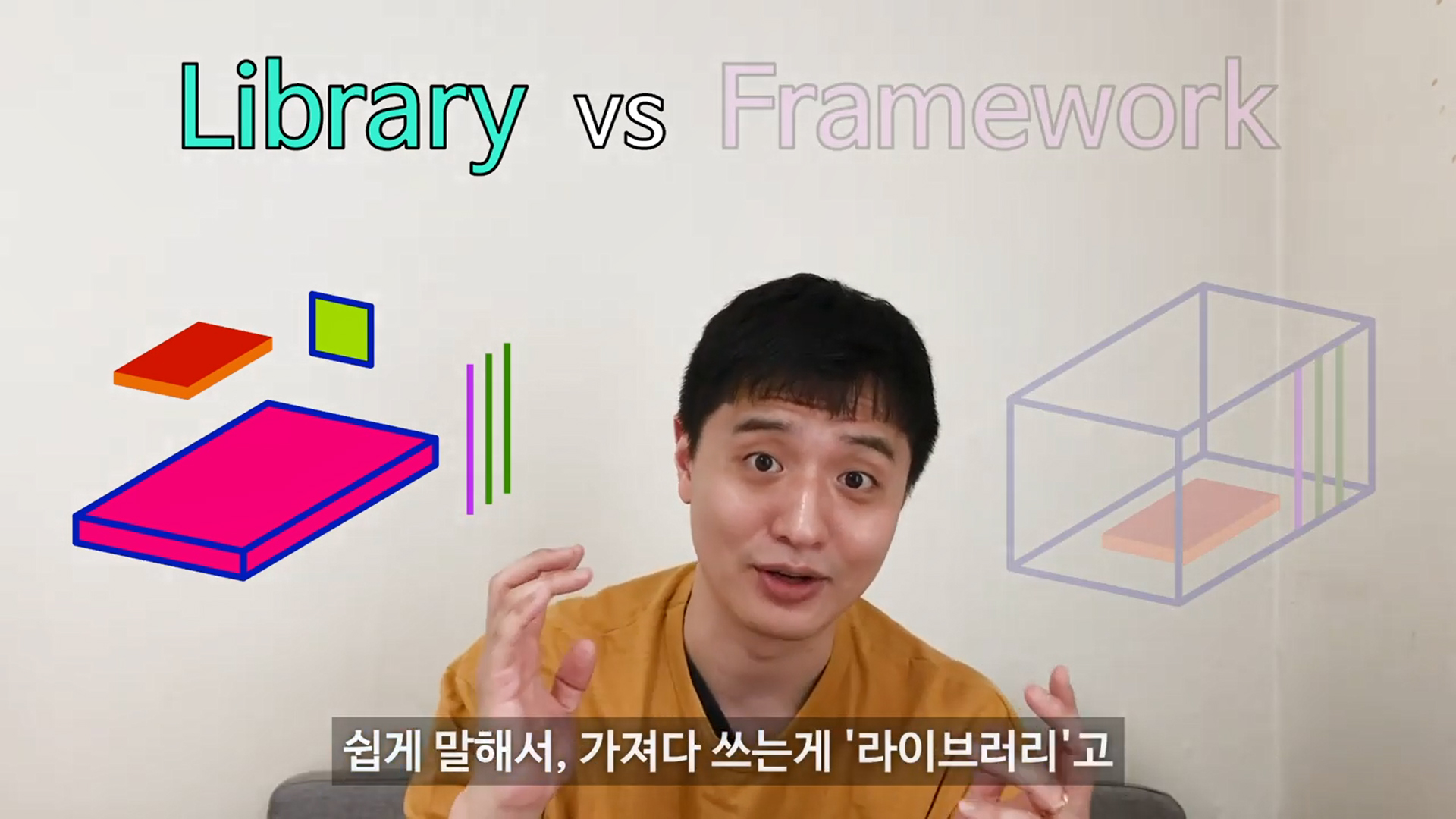 프레임워크 : 프레임워크가 코드를 호출, 라이브러리 : 코드가 라이브러리를 호출
