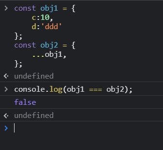 그 예를 설명하기 위한 사전 지식으로, 자바스크립트에서 제공하는 spread operator도 객체의 불변성을 확보하기 위해서 새 객체를 만드는 것임을(= 기존 객체를 복사해서 새 객체로 만드는 것) 보여주겠다.