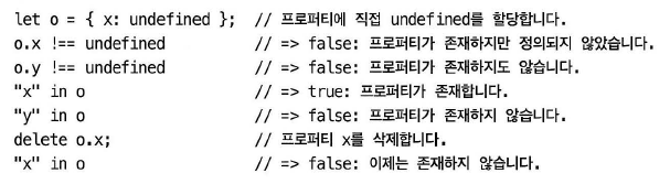 5) in 연산자는 존재하지 않는 프로퍼티, 존재하는데 값(value)가 undefined인 프로퍼티 구분 가능.