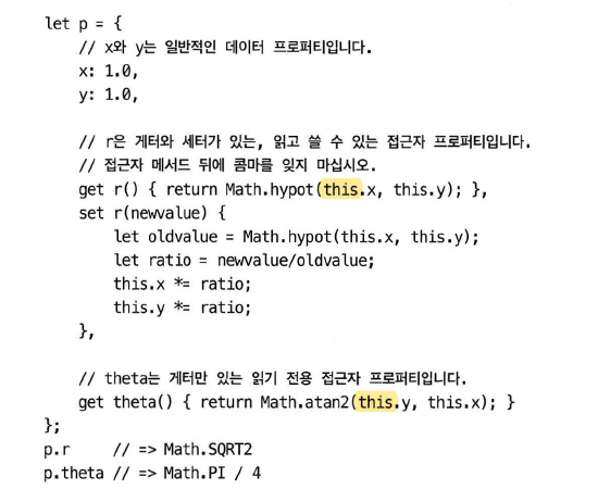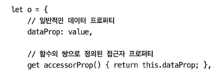 getter, setter: 접근자 프로퍼티의 접근자 메서드.