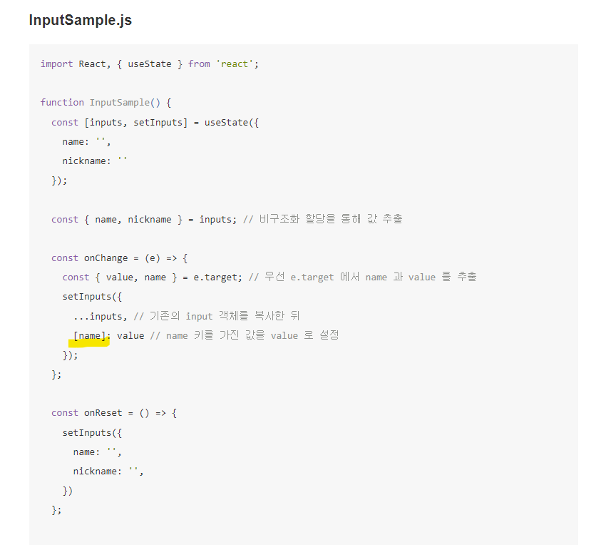출처: https://react.vlpt.us/basic/09-multiple-inputs.html 3) 심벌은 프로퍼티 이름으로 쓸 수 있음.