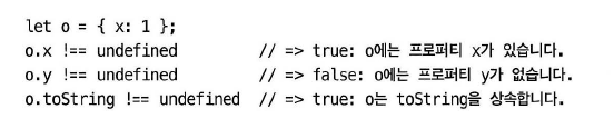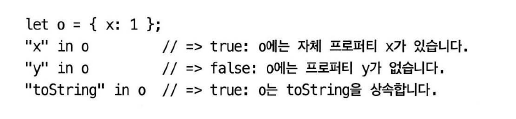 JS는 객체는 프로퍼티 집합: 특정 key를 갖는 프로퍼티 존재 확인 필요하기도 함.