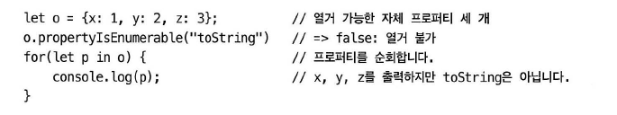 객체의 열거는 for / in 루프를 사용한다. (배열의 열거는 for / of 루프 사용)