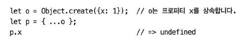 spread operator는 자체 프로퍼티만 분해. 상속 받은 프로퍼티는 분해 불가.