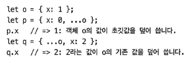두 객체에 같은 프로퍼티가 있다면 나중 값이 먼저 값을 덮어 쓴다.